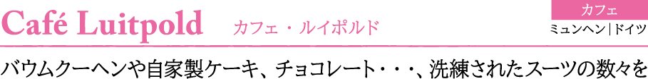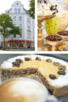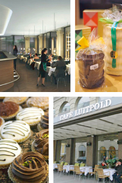 1888年に創業したパルメンガルテンパッサージュにある老舗のカフェ。ドイツ菓子の代表格、バウムクーヘンの他、ケーキやチョコレートの種類が豊富で、カフェコーナーではビジネスランチも楽しめます。バウムクーヘンは通常は量り売り。チョコレートとホワイトチョコレートで覆われた2種を用意しています。『ミュンヘンっ子お気に入りのケーキ』といわれるプリンツレゲンテントルテは、バイエルン王ルートヴィヒ2世が他界した後、摂政宮となったルイトポルドに使える調理人だったハインリッヒ・ゲオルグ・エルブスホイザー により1886年に考案されたと伝えられるケーキ。ビスケット生地とチョコレートクリームが7段に積み重ねられ、周りはチョコレートで覆われています。そのプリンツレゲンテントルテも絶品なので、ぜひ。 (※2010年5月現在:店内の一部改装中)