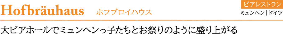 1589年に設立された、ビアホールの代名詞的な存在。ホールの中央ではバイエルン音楽の生演奏があり、1000席を越える大ホールには、昼夜を問わず、地元の常連客から観光客まで大勢が集います。ちなみに常連客は、集合場所的な小さなボードの下に顔見知り同士が集まって陽気に飲むのが習慣だとか。そんなホールではオクトーバーフェストで知られるハート型のクッキーも販売し、1年中、お祭りの雰囲気が味わえます。ビールの種類は、オリジナル(クラシックラガー)、ドゥンケル(ダーク)、シュヴァルツヴァイス(アロマチック)の3種。それらを店自慢の伝統的なバイエルン料理とともにいただきます。ビールによくあうハムやソーセージの盛り合わせBrotzeit Teller(ブロートツァイトテラー 8ユーロ)など、ぜひご堪能を。入口付近にはギフトショップもあります。